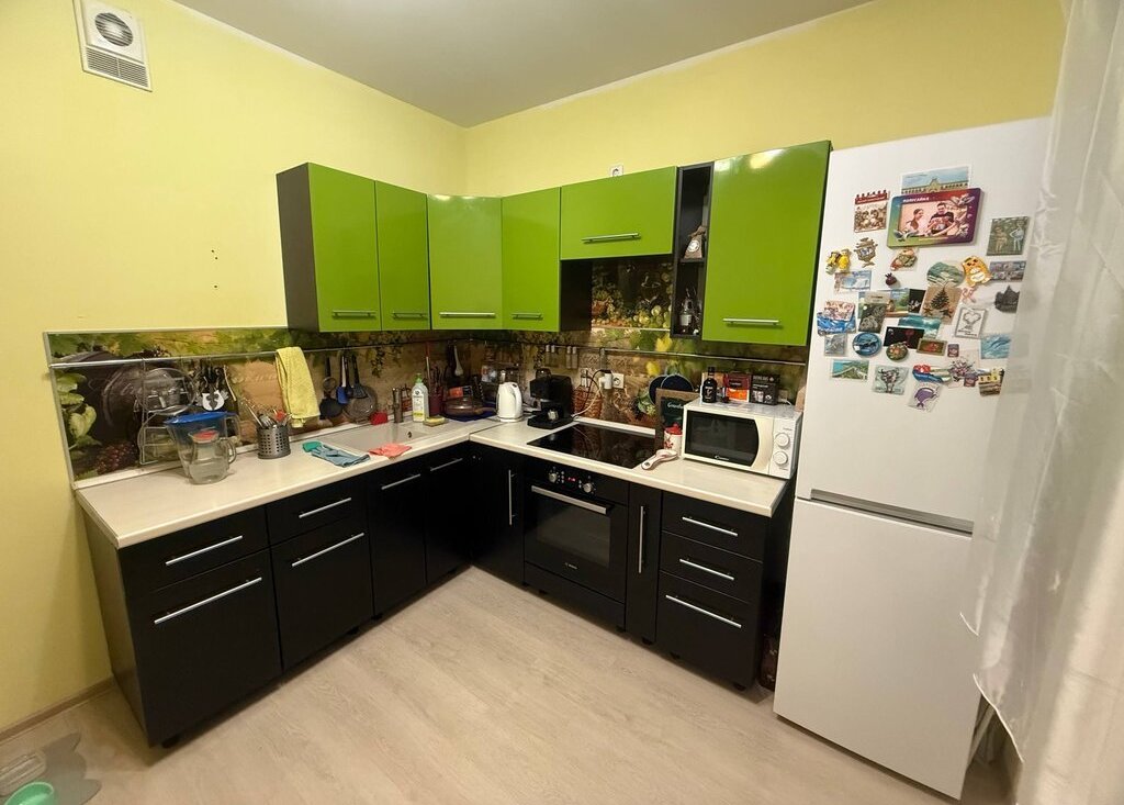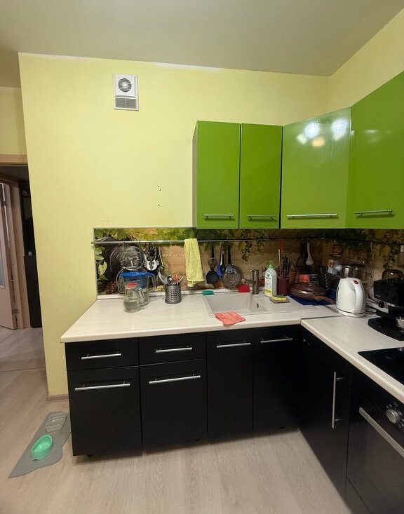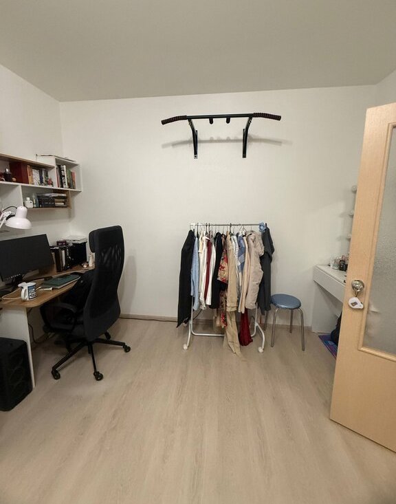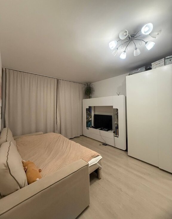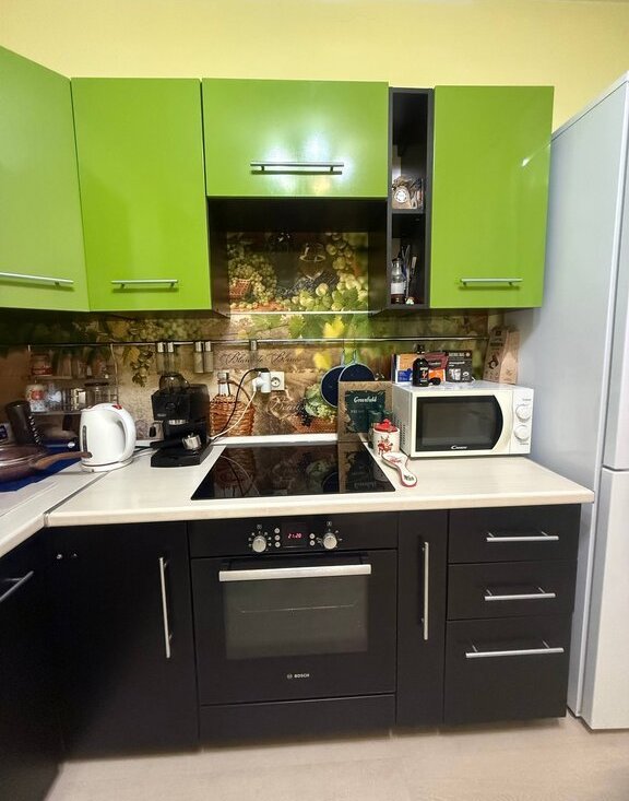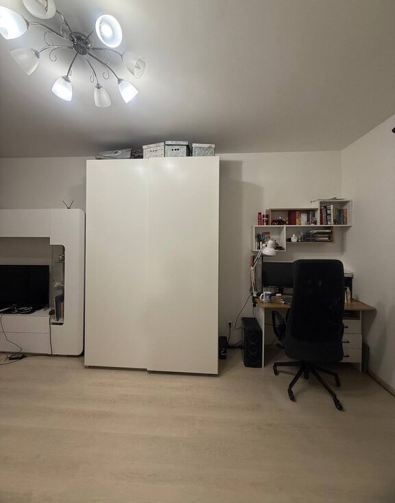 В квартире отделка от застройщика, все работает исправно, без нареканий, розетки с заземлением. Оставляем в квартире стенку, шкаф икеевский большой (купе), турник, микроволновку, холодильник, полки навесные со шкафом в прихожей.