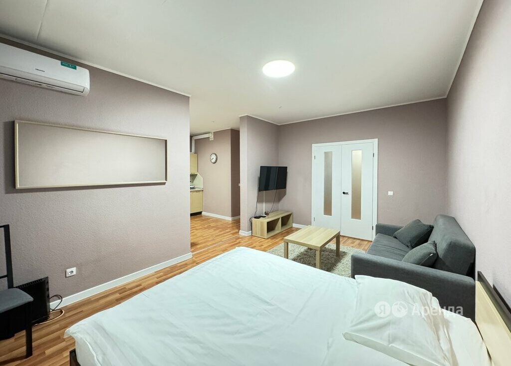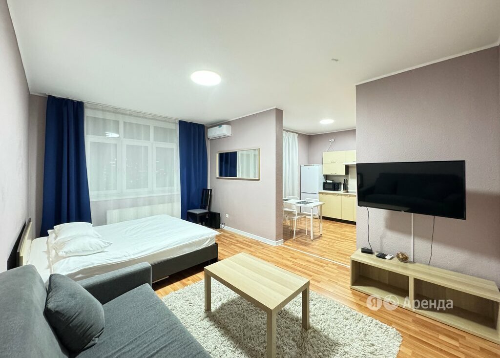 Сдаётся 1-комнатная квартира площадью 41 кв.м. с евроремонтом на 25 этаже в 25-этажном доме на срок от 11 месяцев. Из техники есть: