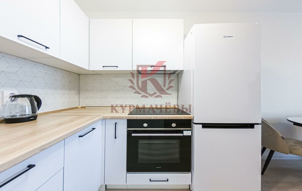 - электрическая варочная поверхность на 4 конфорки, духовой шкаф, вытяжка, чайник, холодильник, стиральная машинка, телевизор;