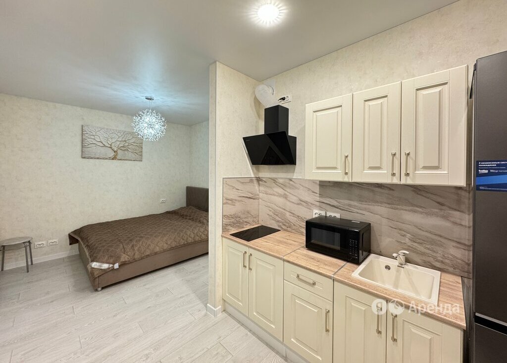 Сдаётся студия площадью 30 кв.м. с дизайнерским ремонтом на 12 этаже в 25-этажном доме. Из техники есть: