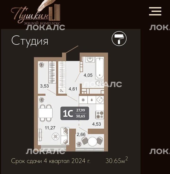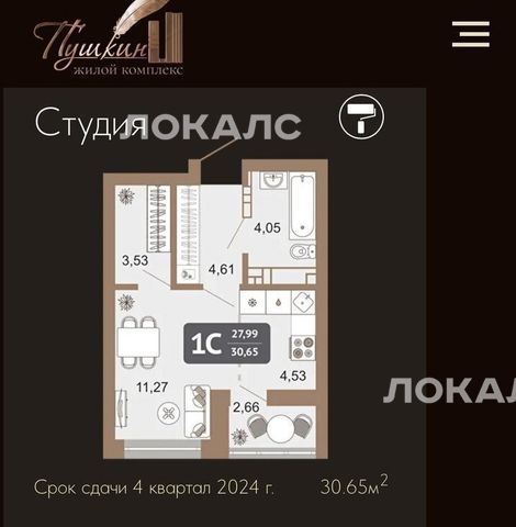 Представляем вашему вниманию студию 28,4 м² в премиальном ЖК Пушкин, которая уже ждёт своего хозяина или первых арендаторов!