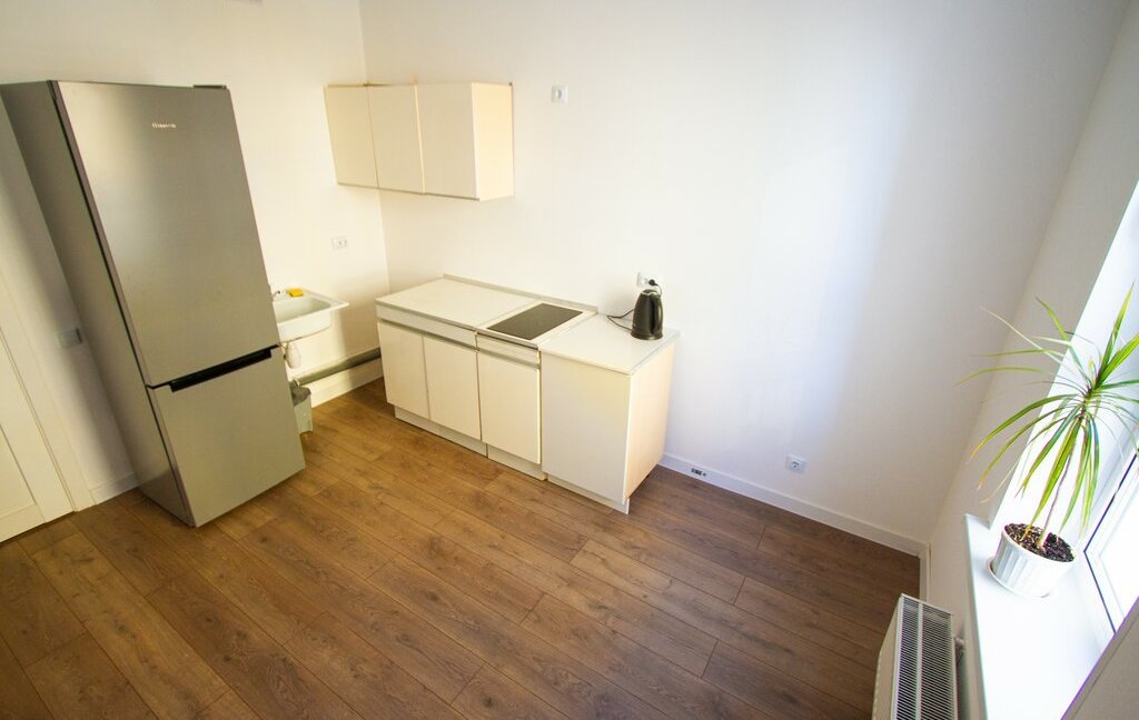Из техники: варочная поверхность, чайник, холодильник, стиральная машина, электрический полотенцесушитель.