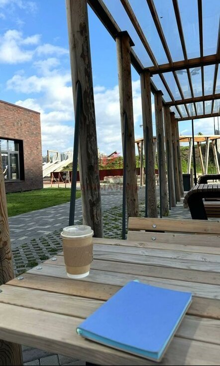 Чилл зона с летними столиками для вечернего отдыха, в доме классная кофейня.