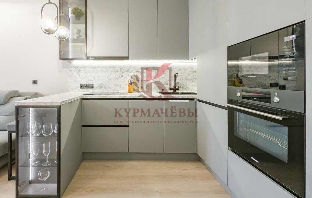 - В наличии: телевизор, холодильник. Встроенные индукционная варочная поверхность на 4 конфорки, духовой шкаф, микроволновая печь, вытяжка, посудомоечная машина. В ванной комнате размещена автоматическая стиральная машина.