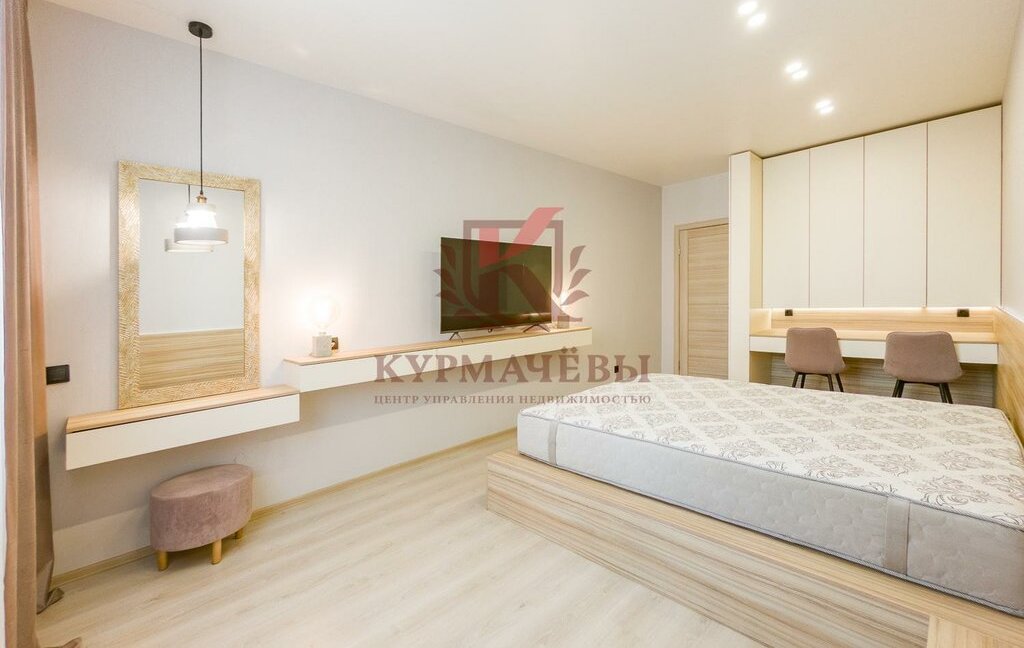 - Большое количество мест для хранения, как шкафчиков, так и гардеробных шкафов. В коридоре два вместительных гардеробных шкафа. В спальной комнате два навесных шкафа, как для одежды, так и для иных вещей. Имеется отдельная гардеробная комната с дверью-купе.