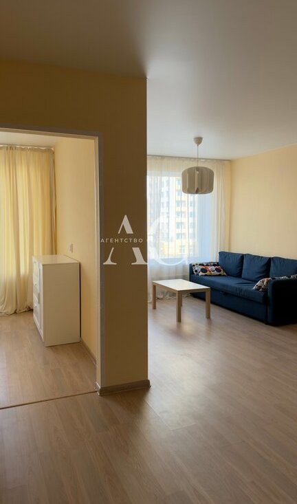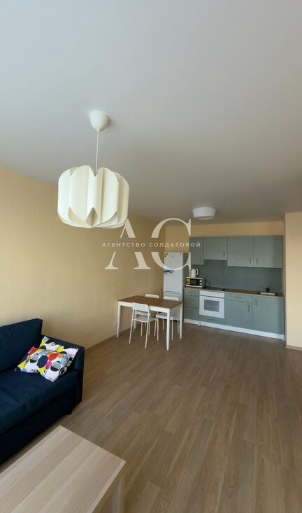 Просторная кухня- гостиная, и отдельная спальня, ниша-гардеробная. Оснащение всей необходимой мебелью.