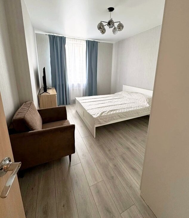 Квартира с хорошим ремонтом. Современная мебель, холодильник, телевизор, стиральная машина автомат, микроволновка, кондиционер. Цена 27 т.р. + к/у ( в среднем с отоплением 4,5 т.р., без отопления 3 т.р., счетчики есть, в том числе и на отопление). Возвратный депозит 15 т.р., можно частями. Оплата разовой минимальной комиссии ( 35%,9,4 т.р.) только по факту Вашего заселения. Хорошее месторасположение дома, закрытый двор, рядом магазины, Гипер Лента, остановки транспорта. Сдается на длительный срок