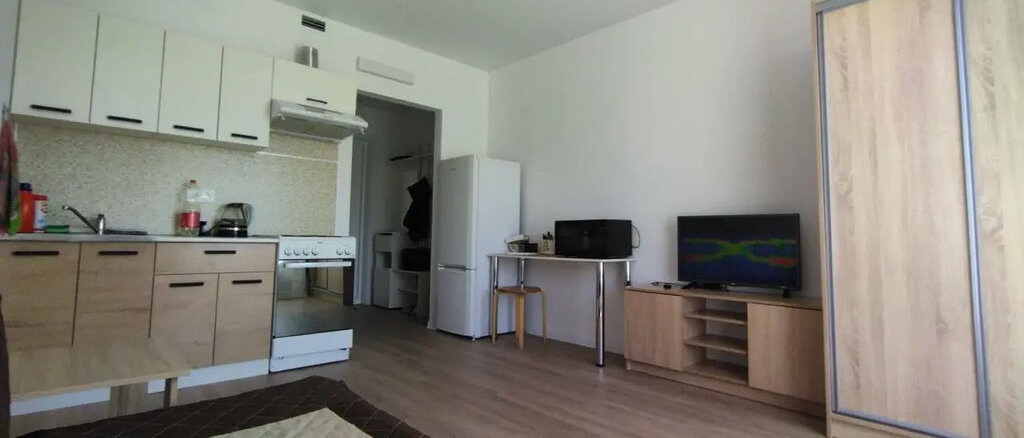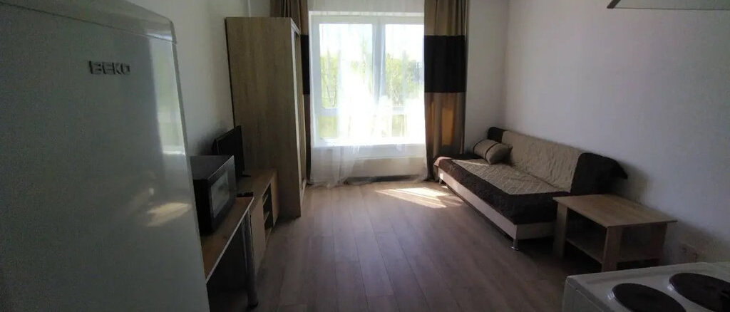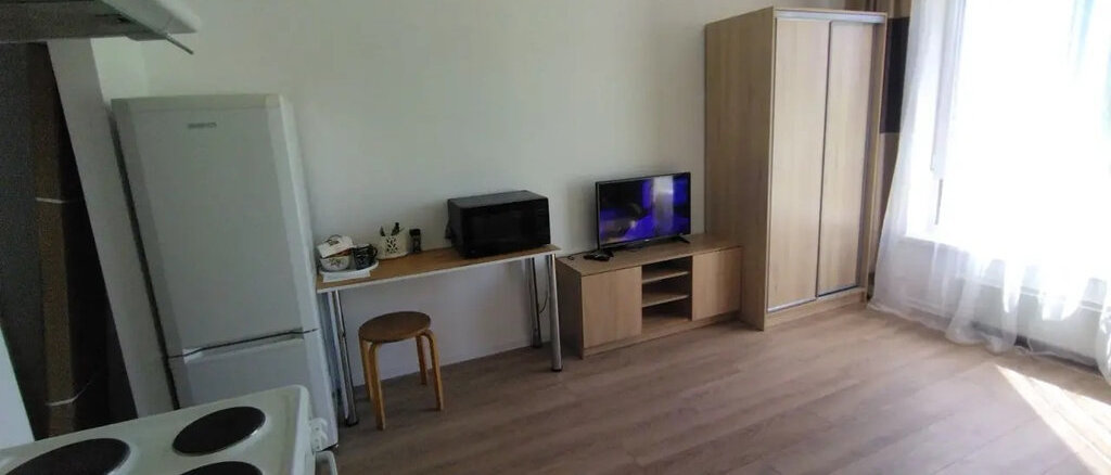 Сдается на длительное время очень уютная студия с великолепным видом из окна в ЖК Утес, в квартире есть вся необходимая мебель (кухонный гарнитур, шкаф, стол и диван) и техника (холодильник, плита, микроволновка, стиральная машина и телевизор). Новый дом, красивый двор с удобной детской площадкой, тихие соседи.