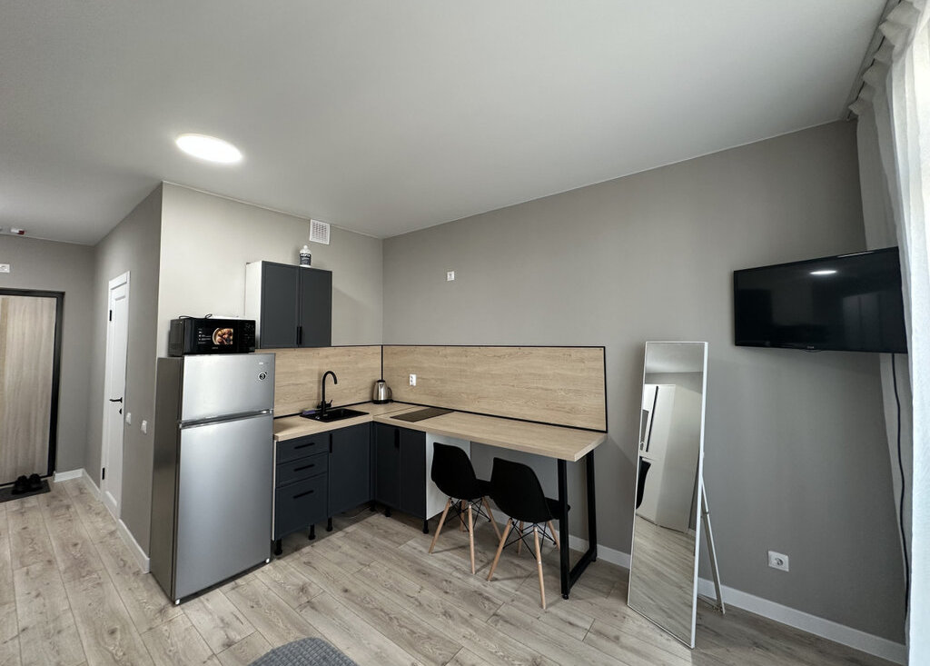 Стильная современная просторная светлая студия в новом жилом комплексе "Дом на Ясной". В квартире есть вся необходимая мебель для проживания. Качественная кухня, мебель. Все новое. Установлен фильтр для воды. Квартира ждет своих жильцов для комфортной жизни. Большая придомовая парковка за шлагбаумом. Залог 30 тр.