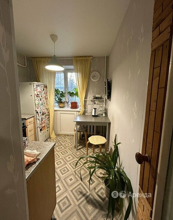 Сдаётся 1-комнатная квартира площадью 35 кв.м. с косметическим ремонтом на 1 этаже в 5-этажном доме на срок от 11 месяцев. Из техники есть: