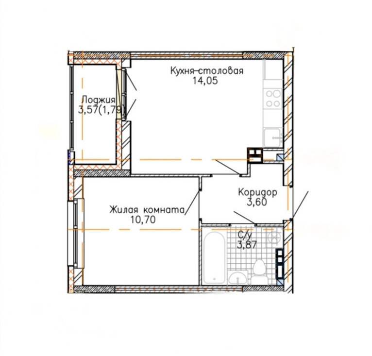 1-к кв. Свердловская область, Екатеринбург ул. Пехотинцев, 2Д (40.0 м²)