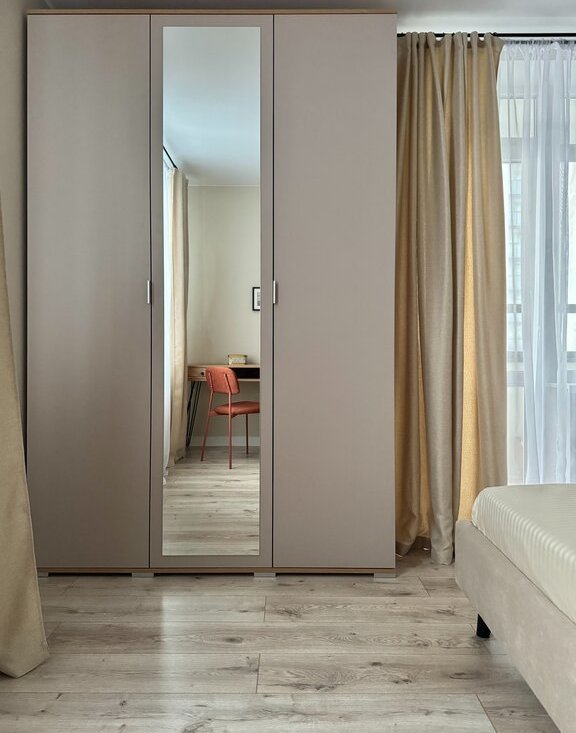 • большой вместительный шкаф, открытая вешалка