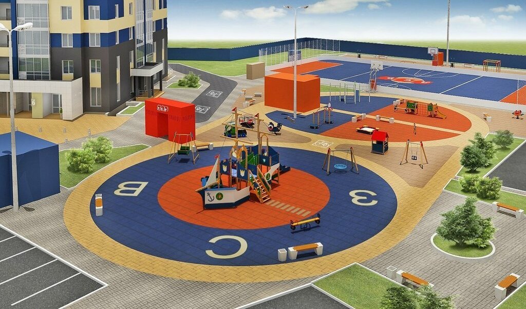 Закрытая территория с детской площадка