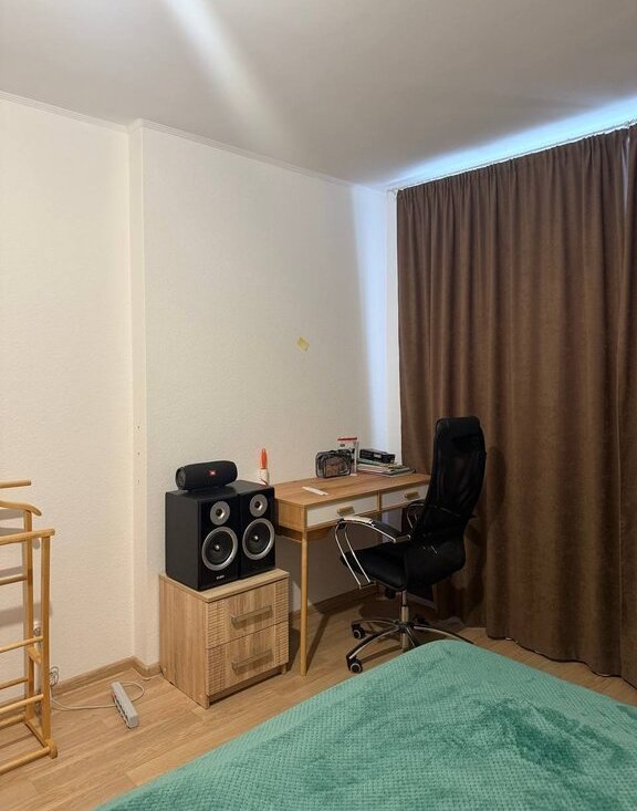 В спальне: двуспальная кровать, вместительный шкаф, письменный стол
