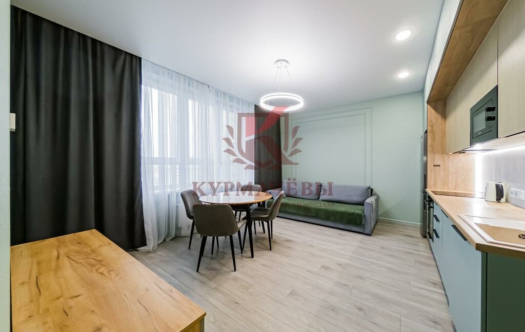 Расположенная на 15 этаже 21-этажного монолитного дома. Общая площадь 45 м² гармонично разделена на уютную спальную зону и впечатляющую кухню-гостиную, создающую ощущение простора и свободы.