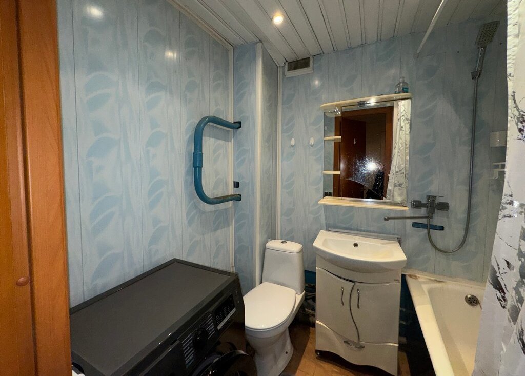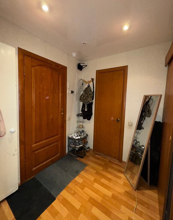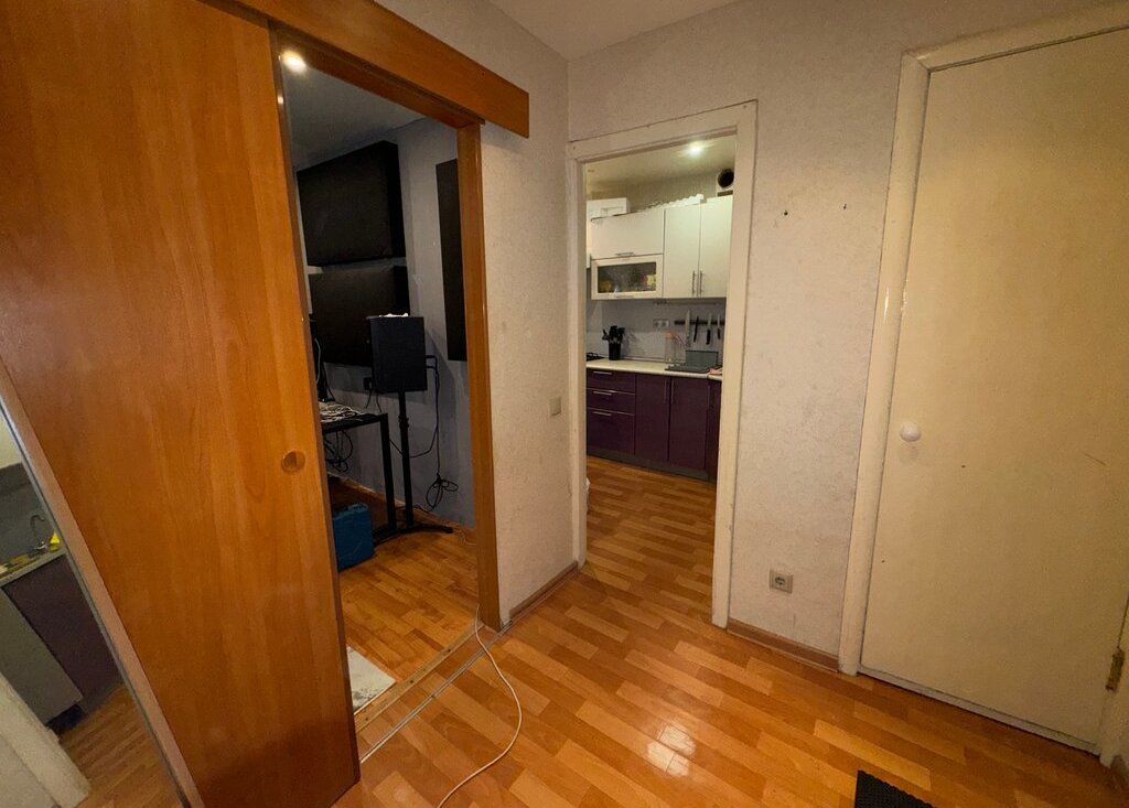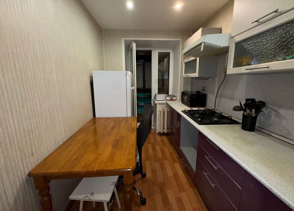 В квартире длинная кухня с балконом, кладовая для хранения, и большая комната. Потребуется косметический ремонт, в квартире натяжные потолки, электрика и трубы заменены, стоят счетчики на воду. Квартира не сдавалась в аренду, жили сами.