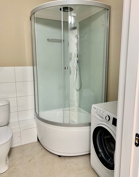Сан.узел -душевая кабина и стиральная машина.