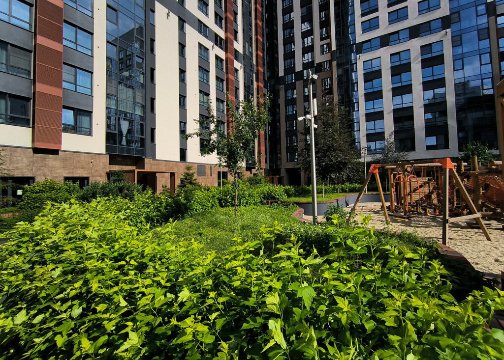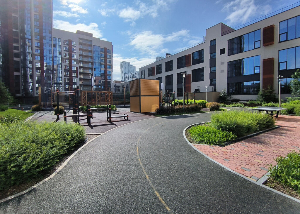 - закрытая территория двора с зелеными лаунж-зонами и воркаутом