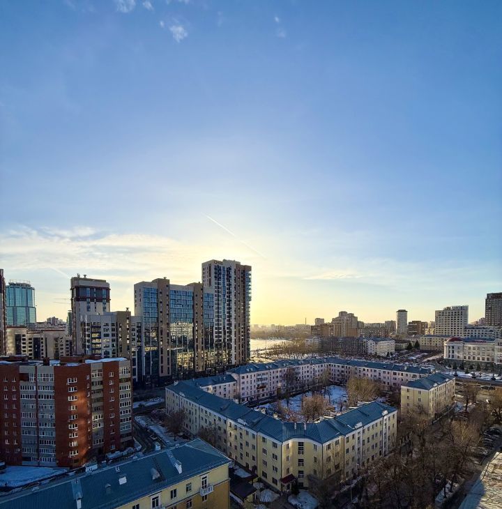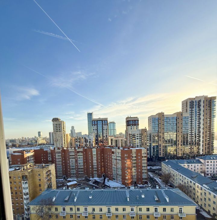 Квартира площадью 43,7 м² расположена на 14 этаже в доме с закрытой территорией. Из окон и панорамной лоджии открывается красивый вид на город, реку Исеть и Макаровский мост.