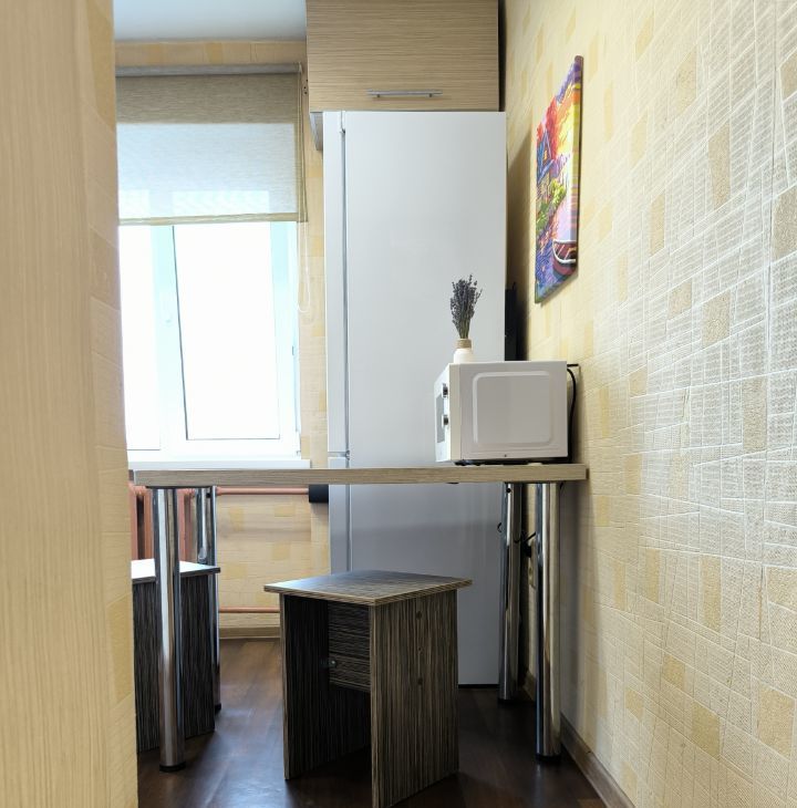 В наличии новая бытовая техника: стиральная машина, холодильник, микроволновая печь.