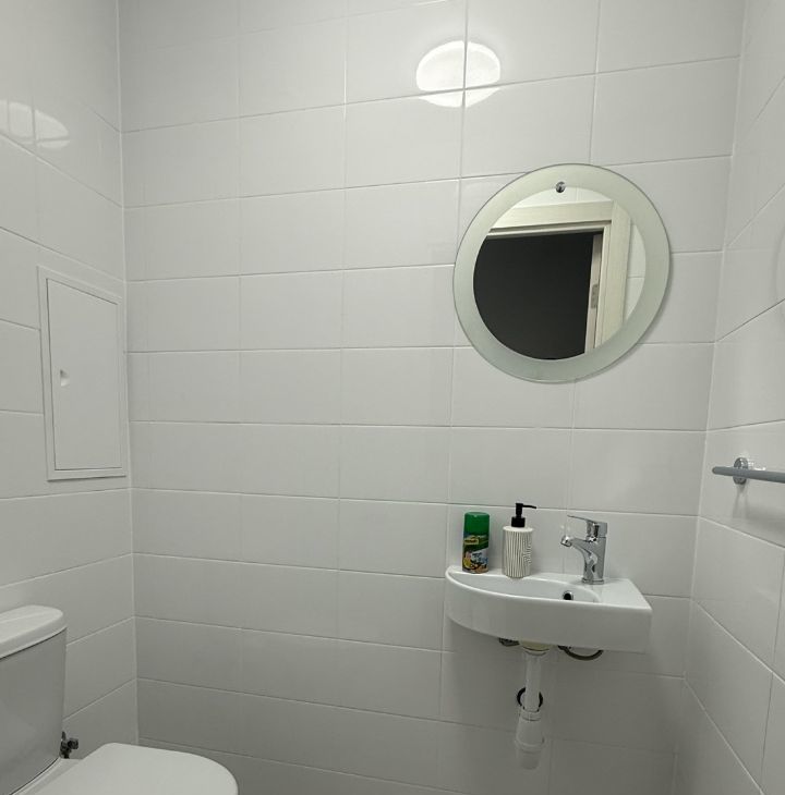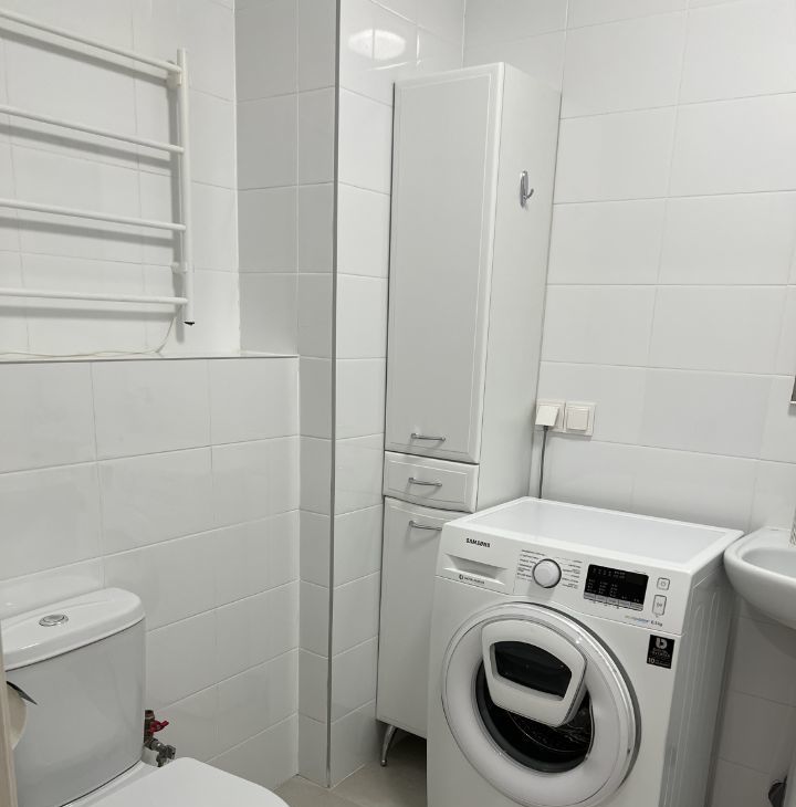 Два санузла: в одном ванная с унитазом и раковиной, стиральной машинкой, шкафом и электрическим полотенцесушителем, во втором - унитаз и раковина.