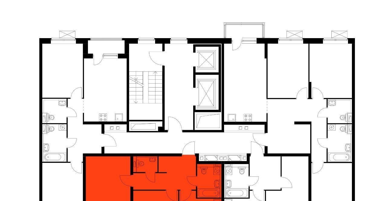 На этаже всего 4 квартиры, в подъезде два лифта: грузовой и пассажирский.
