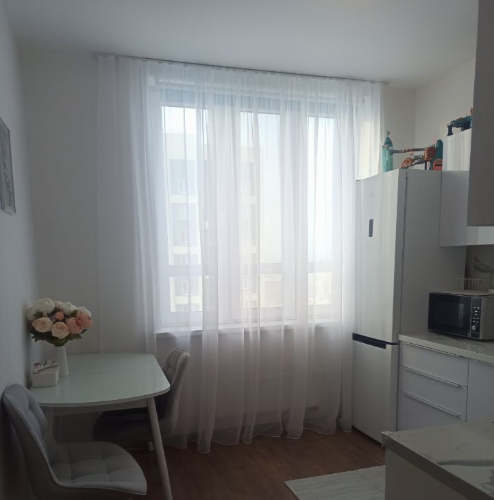 Ремонт от застройщика. В квартире остаётся встроенный шкаф купе в прихожей,кухонный гарнитур,диван.