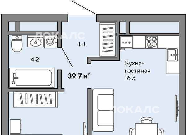 2-к кв. Свердловская область, Екатеринбург просп. Космонавтов, 108Ж (42.0 м²)