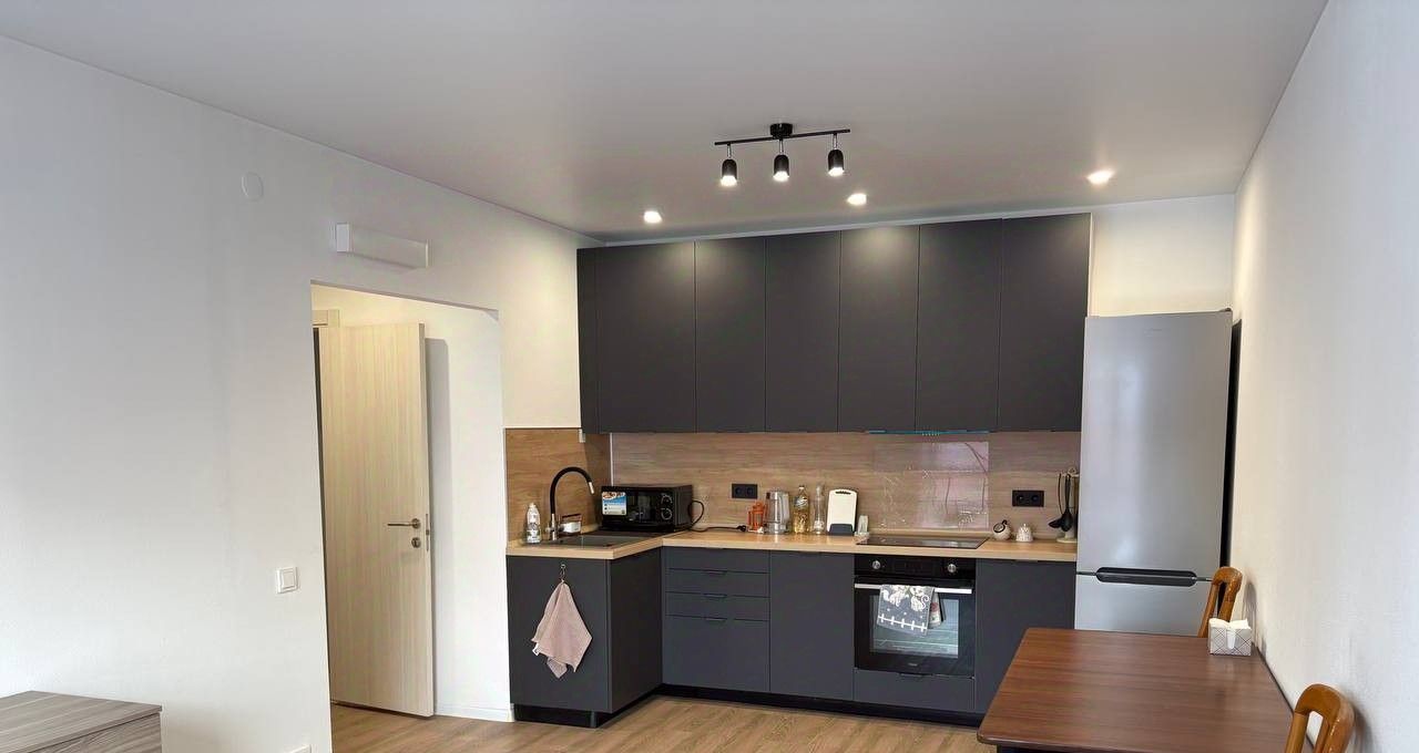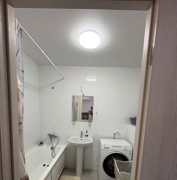 В квартире выполнен косметический ремонт. В наличии вся необходимая мебель: кухня полностью оборудована. Из техники в распоряжении холодильник, духовой шкаф, варочная поверхность, микроволновка, стиральная машина. В квартире 2 санузла: совмещённый с ванной и отдельный.