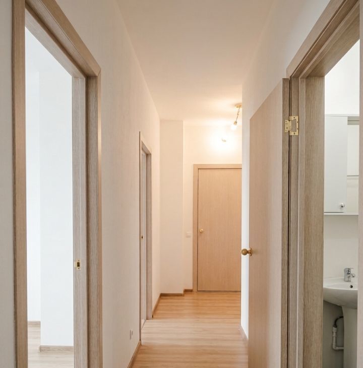 В квартире белые стены/ламинат (отделка на фото).