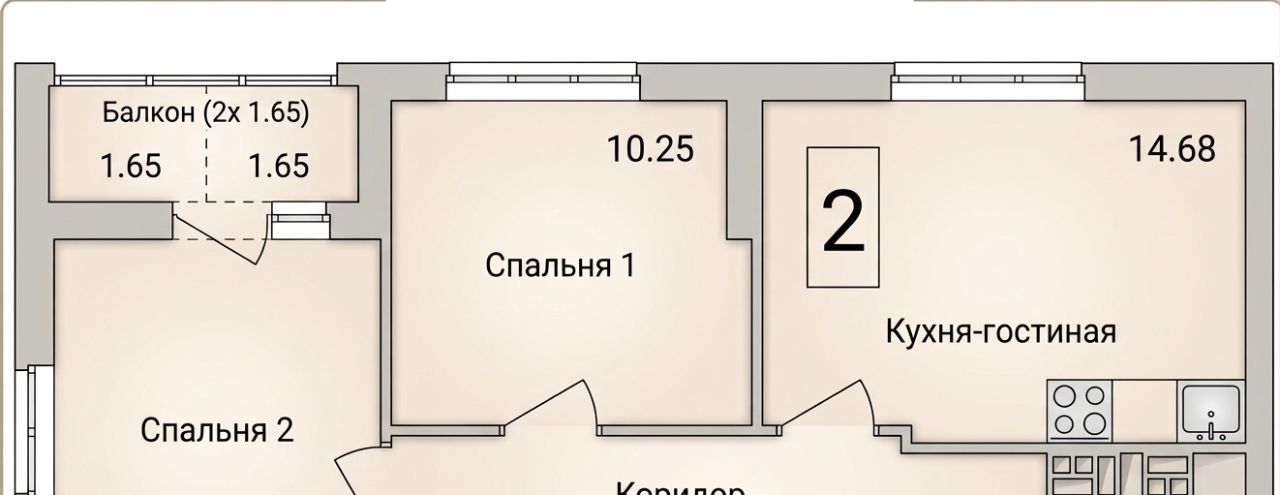 Квартира с двумя спальнями и кухней-гостиной, отличный вариант как для жизни молодой семьи, так и для инвестиции/под сдачу в аренду.
