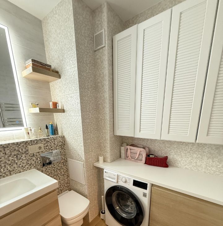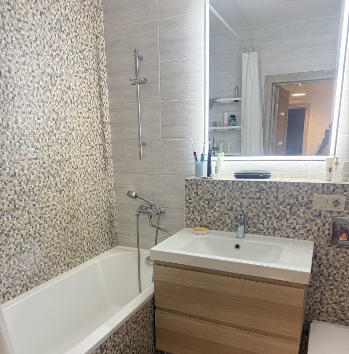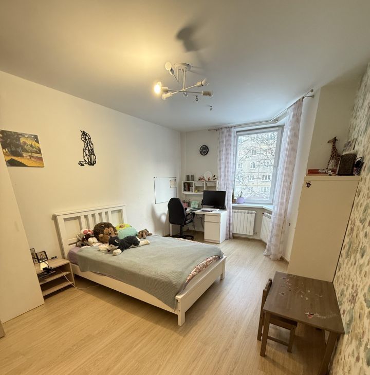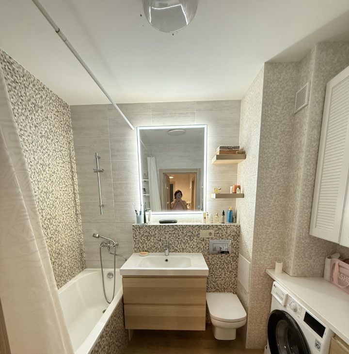 В комнатах и на кухне имеется вся необходимая мебель. Из техники в вашем распоряжении холодильник, посудомоечная машина, телевизор и стиральная машина. Санузел совмещённый и оборудован ванной. Две лоджии выходят во двор.