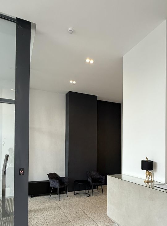 Закрытый современный благоустроенный двор, ресепшн с консьержем и охраной, дом оснащен системой видеонаблюдения.