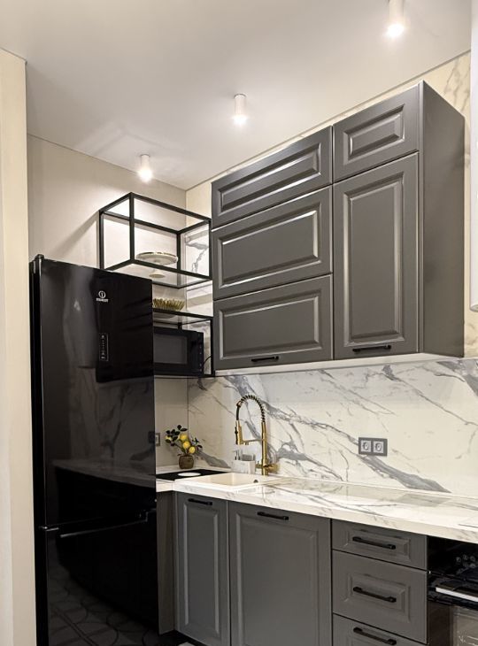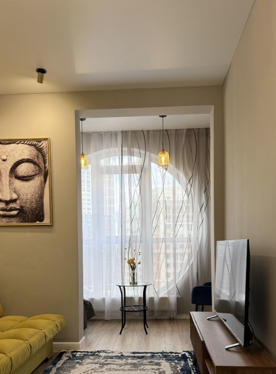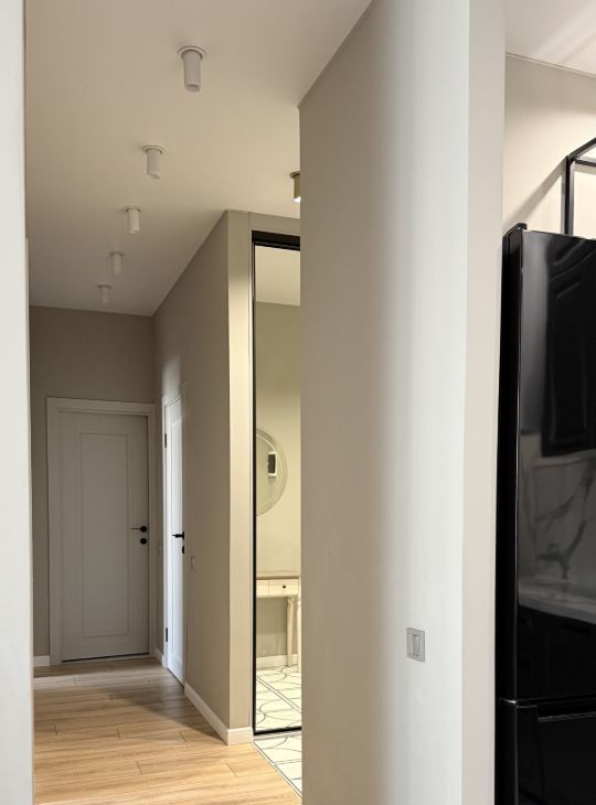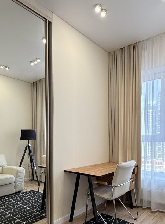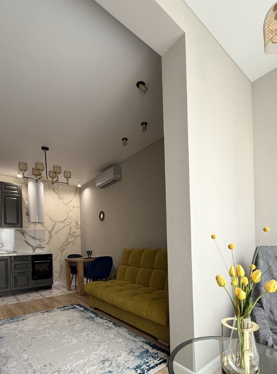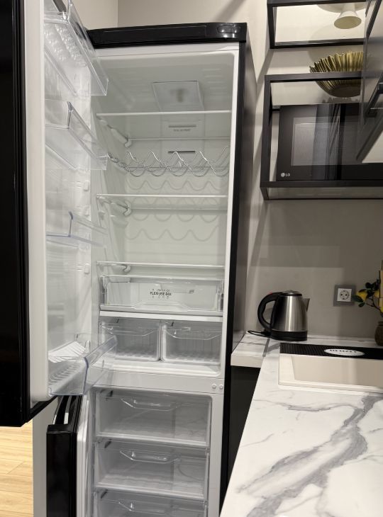 В квартире выполнен дизайнерский ремонт, вся мебель и техника новые.