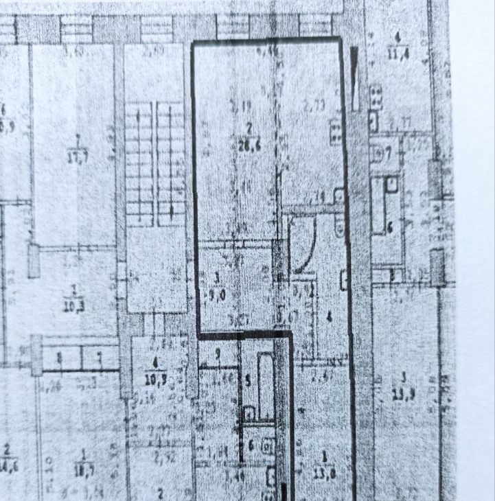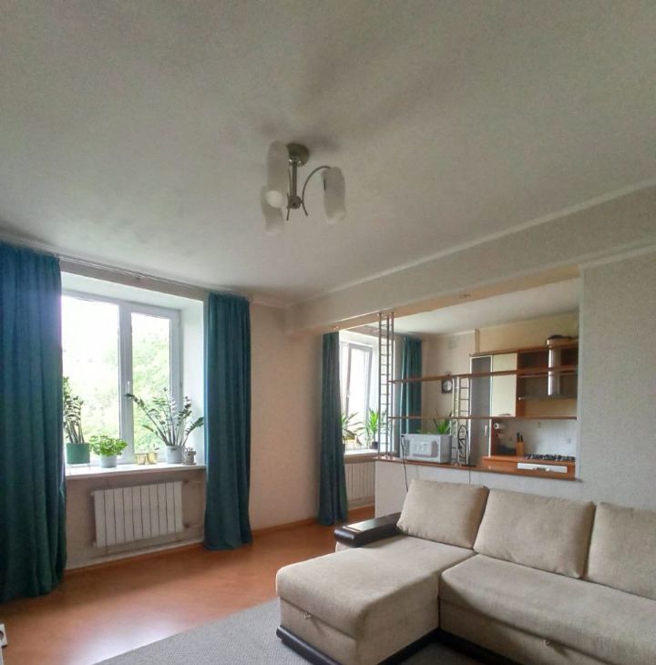 Общая площадь 57 метров: спальня 13м, комната 17.6 и кухня 11 метров. Комната и кухня объедены,что добавляет простора, перепланировка узаконена. Высокие потолки - 2,85. толстые кирпичные стены.