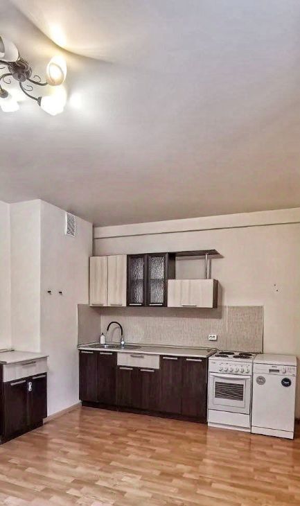 В квартире есть необходимый минимум: шкаф, комод, кухонный гарнитур, холодильник и посудомоечная машина. Остальное вы добавите под свой вкус.