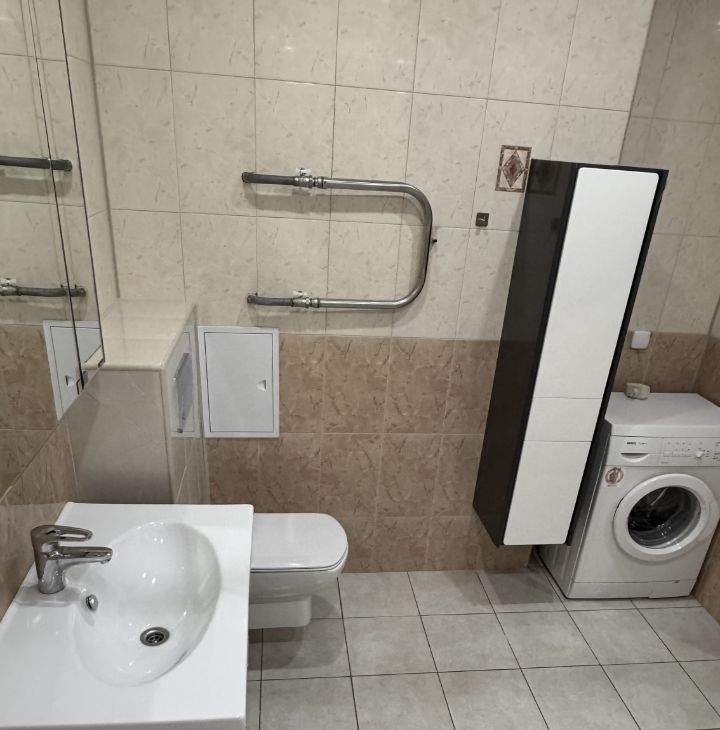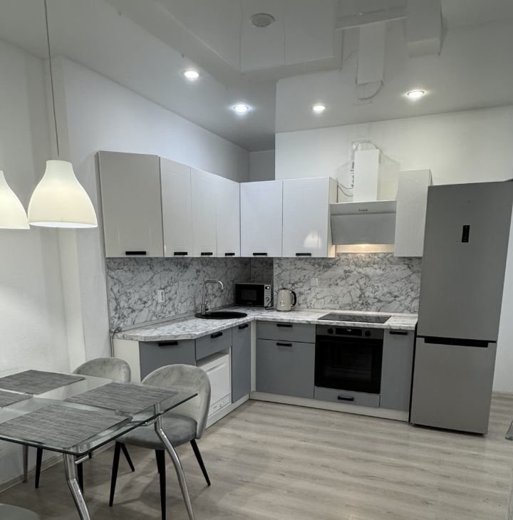 Кухонный гарнитур, встроенный духовой шкаф, варочная поверхность,вытяжка,обеденная зона, 2-х метровый холодильник BOSCH, микроволновая печь , чайник , 1 диван раскладной, Кровать 2-х спальная 160Х200, Гардеробная, стиральная машина BOSCH, посудомоечная машина BOSCH, пылесос BOSCH , телевизор , утюг,гладильная доска,сушилка,WI-FI. Шкаф в прихожей , комод .