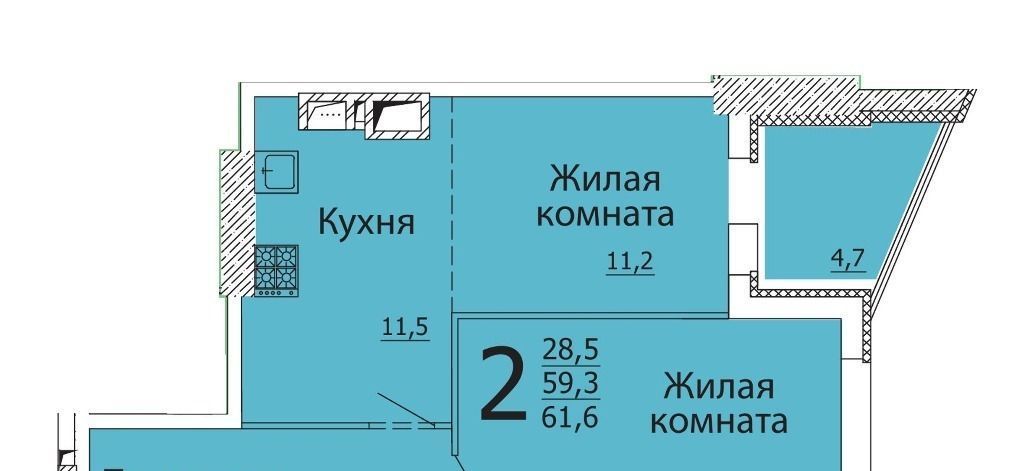 Площадь без лоджии 60 кв.м.,плюс 4.7 кв.м.лоджия.