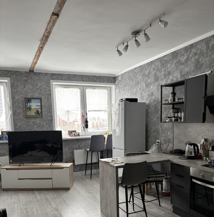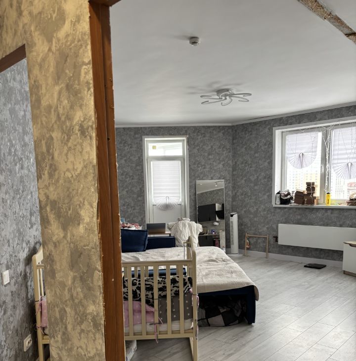 Планировка: Одна изолированная комната и одна комната-студия (гостиная, совмещенная с кухней).