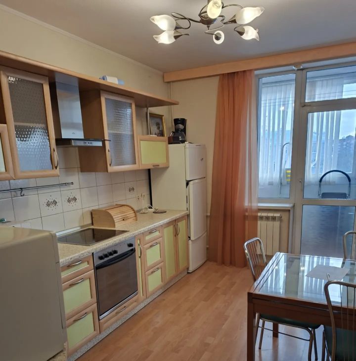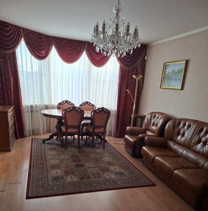 Кухня просторная, площадью 13 квадратных метров, идеально подходит для семейных обедов. В квартире выполнен косметический ремонт, что создает приятную атмосферу. Из мебели имеются спальные места.