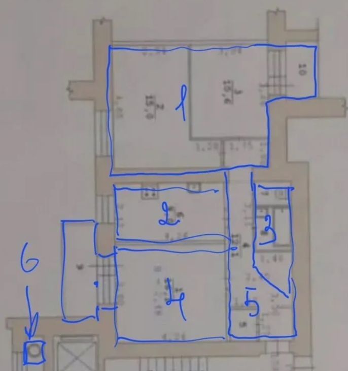 Две комнаты (Были изменения, отметила на схеме БТИ)