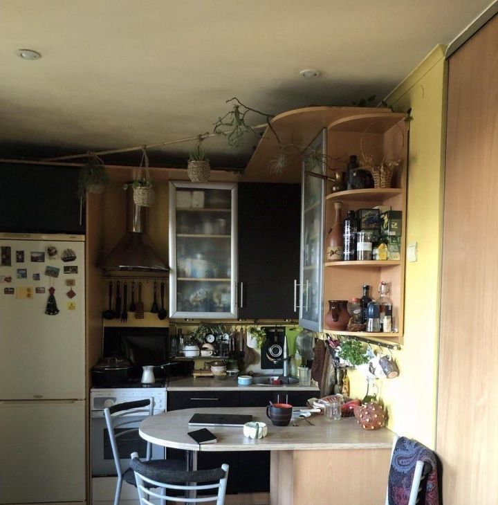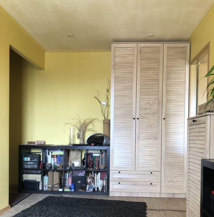 Оставляем кухонный гарнитур и диван в гостиной, вместительный шкаф купе