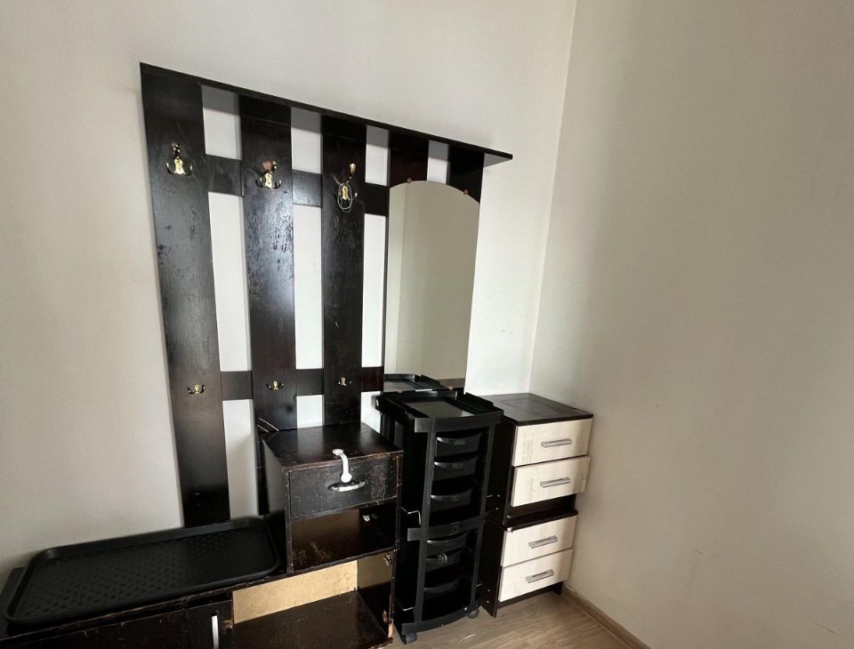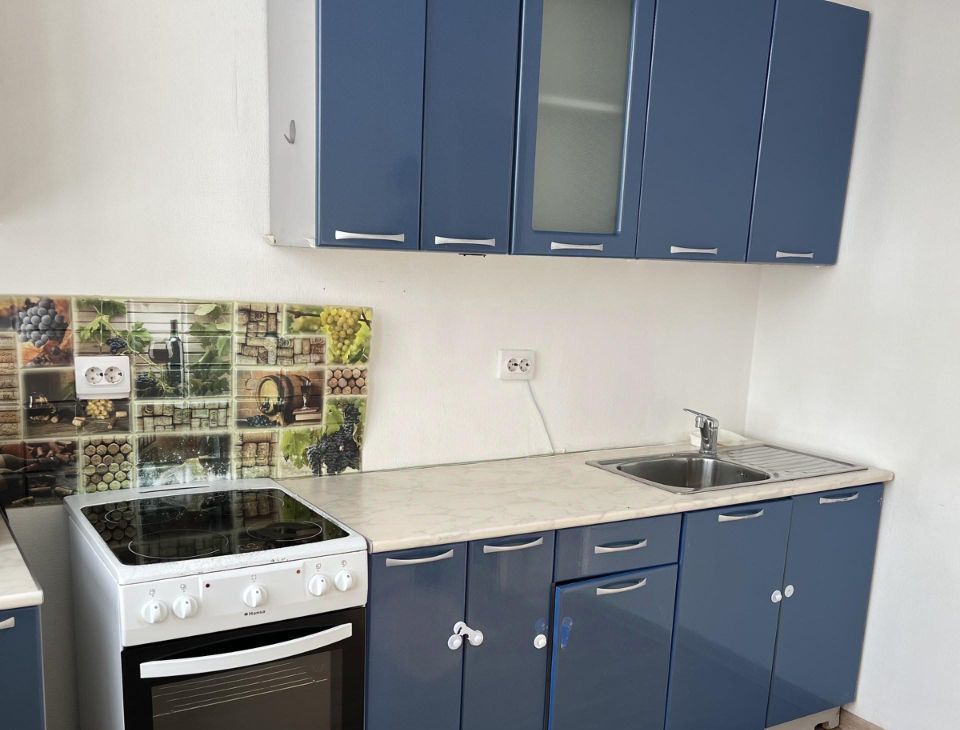 Комнаты полностью изолированы, из техники, кухонный гарнитур, стол, табурет, плита электрическая, мкр печь.