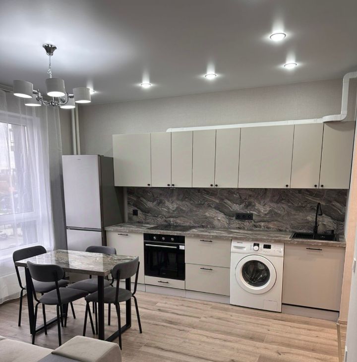 Квартира выполнена в стиле "евроремонт" и готова к проживанию. В комнатах установлена мебель, есть холодильник и стиральная машина, вытяжка, варочная панель, духовой шкаф, есть микроволновая печь, электрический чайник. Особенностью является наличие двух отдельных санузлов, в одном из которых установлена душевая кабина. Также есть балкон, где можно насладиться свежим воздухом.