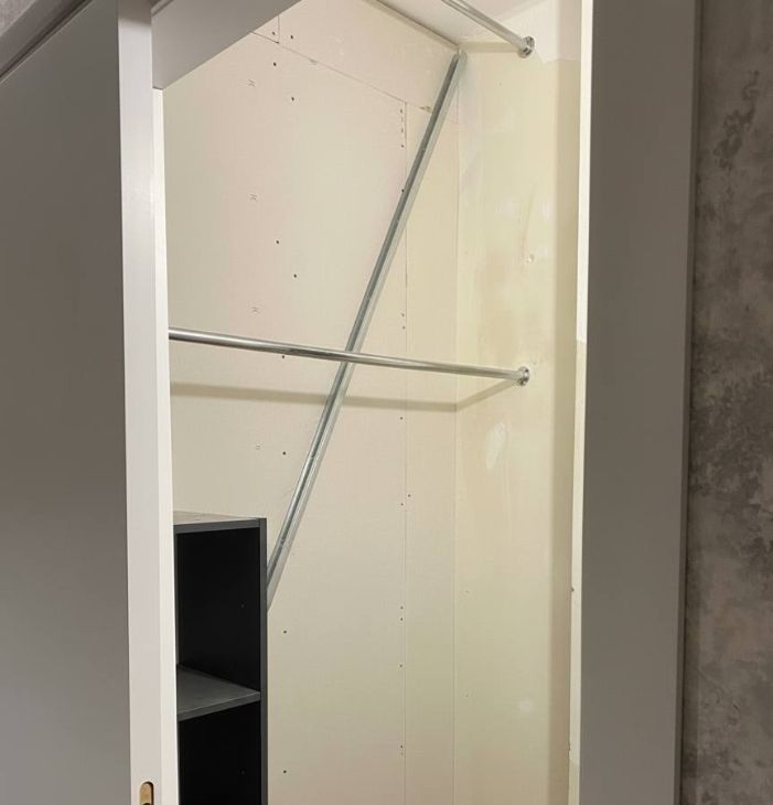 Планировка: кухня гостиная 35кв.м. + комната 13кв.м. Проходной коридор, гардеробная комната с двумя перекладинами. Кладовая комната 2.5кв.м.