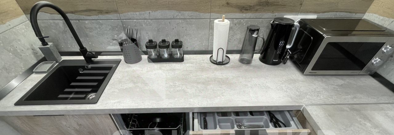 В квартире есть вся необходимая мебель и техника для комфортного проживания:
