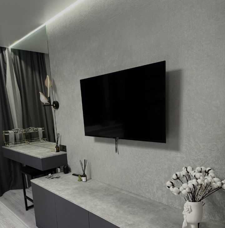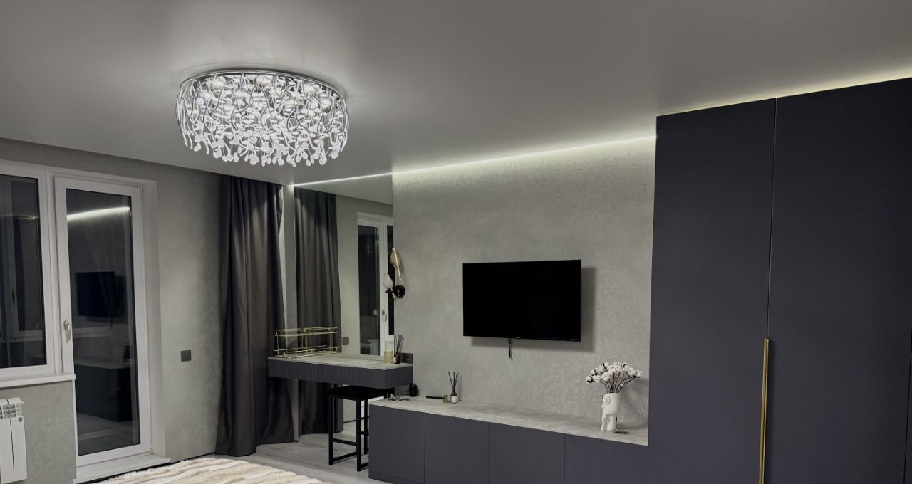 В квартире просторная кухня-гостиная с современная техника - посудомоечная машина, холодильник, вытяжка, духовка и индукционная плита LEX, BOSCH, телевизор HAIER. Вся мебель - итальянская, есть чеки с суммами, затраченными на нее. Два санузла, один с душевой, другой с просторной ванной, стиральная машинка с функцией сушки. В спальне также итальянская мебель, телевизор и кровать и ортопедический матрас фирмы Ormatek. Есть балкон.
