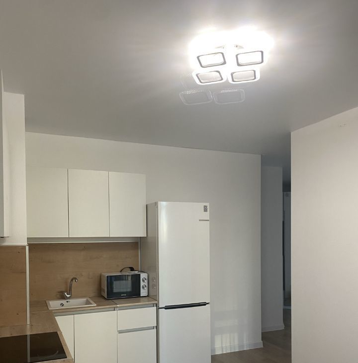 В квартире есть - кухонный гарнитур, индукционная варочная панель, духовая печь, вытяжка, холодильник БОШ, стиральная машинка, большой шкаф в прихожей, кровать. Остальную мебель и технику будем покупать по необходимости. Дом и двор ухоженные, есть детская площадка, места для парковки машин.