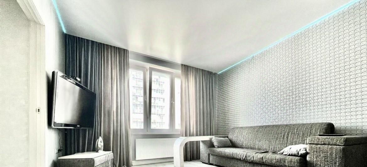 В квартире выполнен дизайнерский ремонт, что делает ее не только комфортной, но и стильной. Все необходимое для жизни уже есть: кондиционер, холодильник, посудомоечная машина, телевизор и стиральная машина. На кухне и в комнате мебель уже расставлена, поэтому можно сразу заезжать и жить. Санузел совмещенный, оборудован душевой кабиной.
