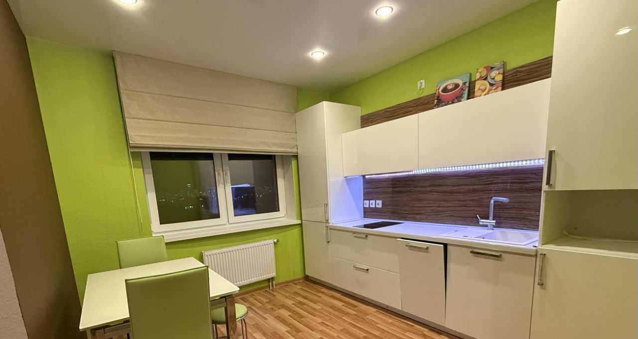 Расположена на 23 этаже 26-этажного комплекса. Квартира с качественным ремонтом и всем необходимым для комфортного проживания: